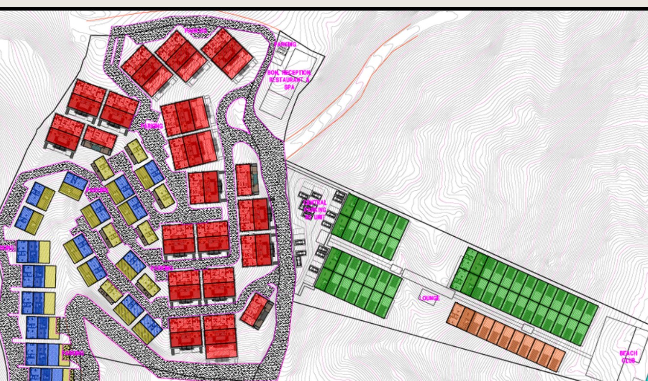 A continuación incluimos planos de implantación y documentación técnica (marzo 2026) para entender el layout del resort, accesos y mix de unidades.